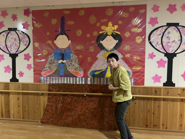 - 廊下に飾られたおひなさま。すこしずつ季節は春めいてきています。